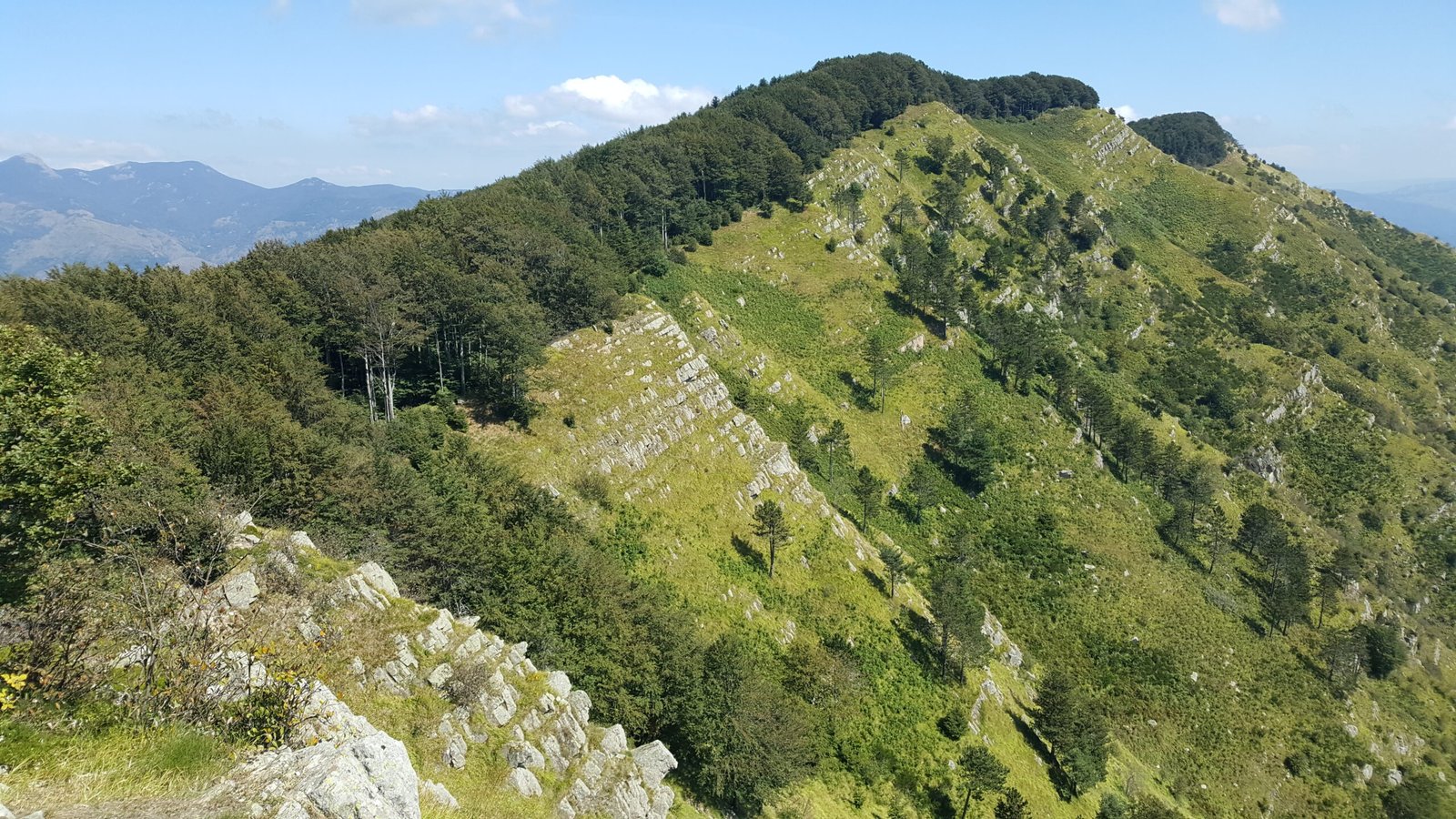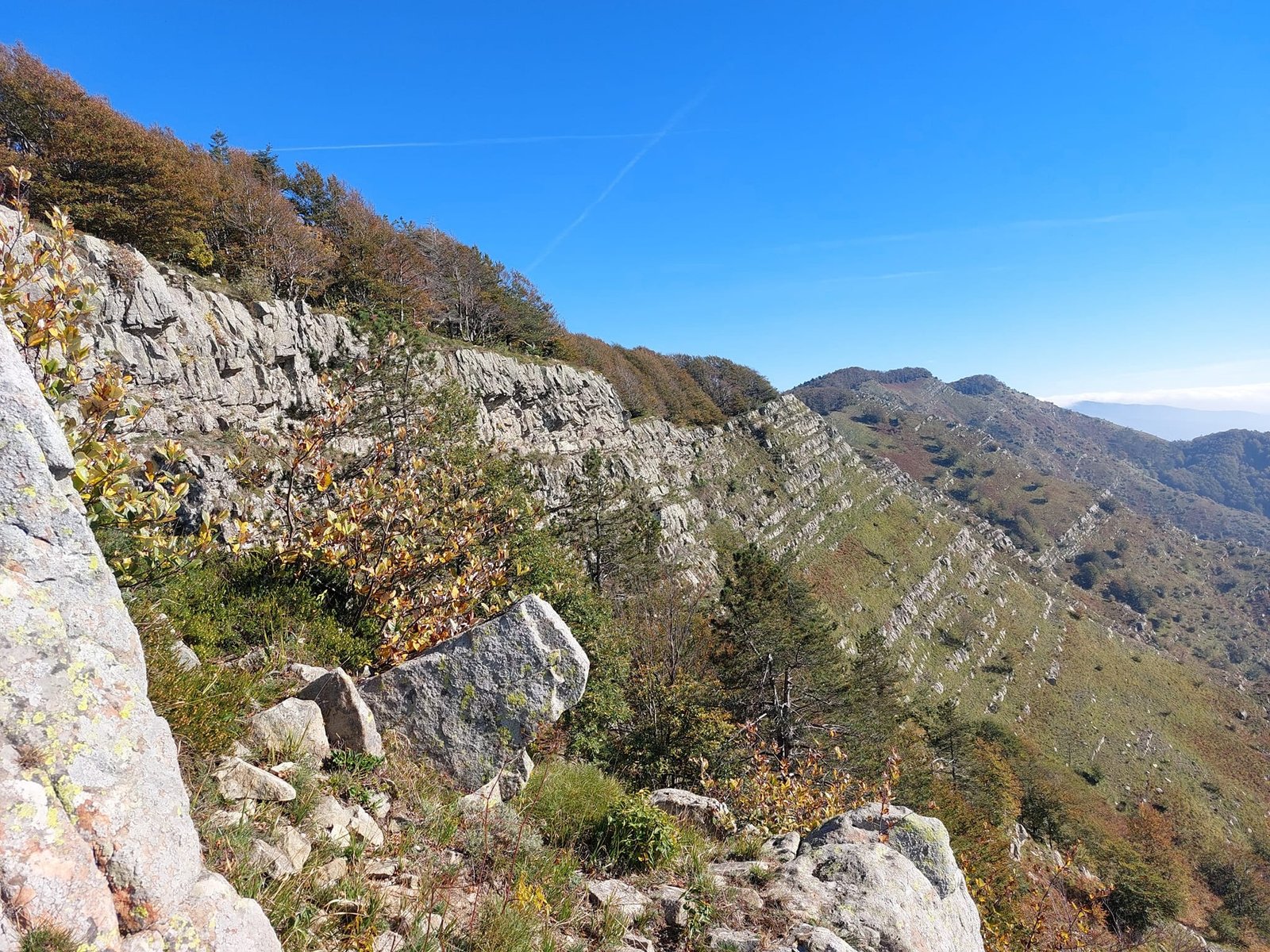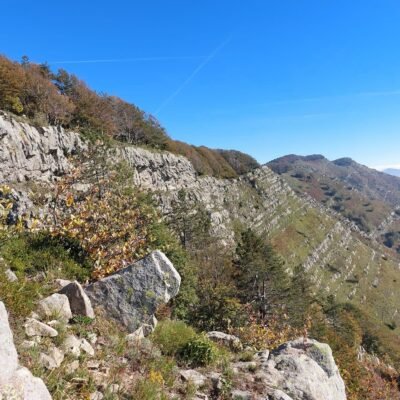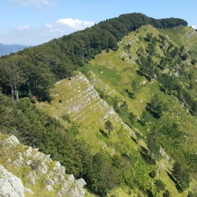 Walking along the Alta Via dei Monti Liguri, along the ridge of Monte Zatta, your gaze is drawn to an extraordinary succession of layers that resemble the pages of a gigantic book: these are the flysch sequences of Zatta, striking and clearly visible even to non-experts. The alternating sandstones and shales unfold in regular rhythms, shaped by time and weathering, offering a geological spectacle of remarkable clarity. Here the mountain does not conceal its history but proudly displays it along the crest, turning the trail into a journey through millions of years of marine sedimentation and tectonic uplift.