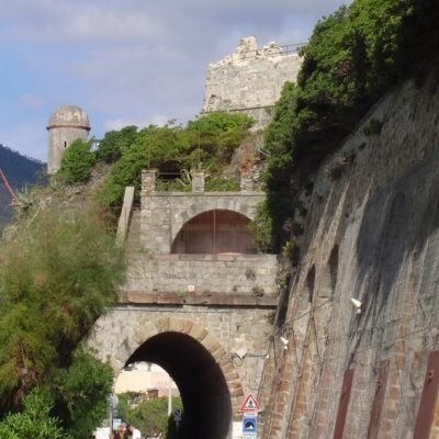 Le mura perimetrali seguono la morfologia del terreno, creando una forma pentagonale unica, con camminamenti e guardiole ancora ben visibili. Al centro si erge la torre a pianta quadrata, simbolo della funzione difensiva originale. Oggi il castello ospita la sede del Centro Studi Felice Romani, con una biblioteca tematica, e la mostra permanente Munegia Antiga, dedicata alle tradizioni del territorio, al mare e al mondo contadino, trasformando l’antica fortezza in un luogo vivo di cultura e memoria.